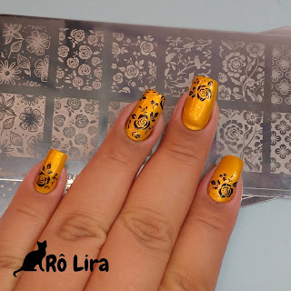 Nessa combinação usei o Dourado da Carimbo de Unhas,o Preto para carimbo da Carimbo de Unhas e as plaquinhas CDU001 e CDU008 da Carimbo de Unhas.