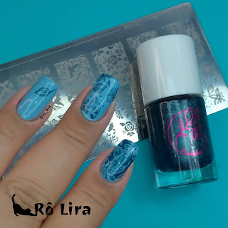 Hoje temos uma combinação em tons de azul por aqui. Nessa combinação eu usei o Bandeirinha da Diamanty, o Marinho da Carimbo de Unhas, a Plaquinha CDU008 da Carimbo de Unhas e o extra brilho da Ideal.